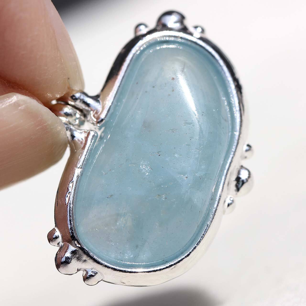 不定形なルースの形に合うように枠を作りました。優しいパステルブルーの色味で、眺めていると穏やかな気持ちになりそうなアクアマリンです。