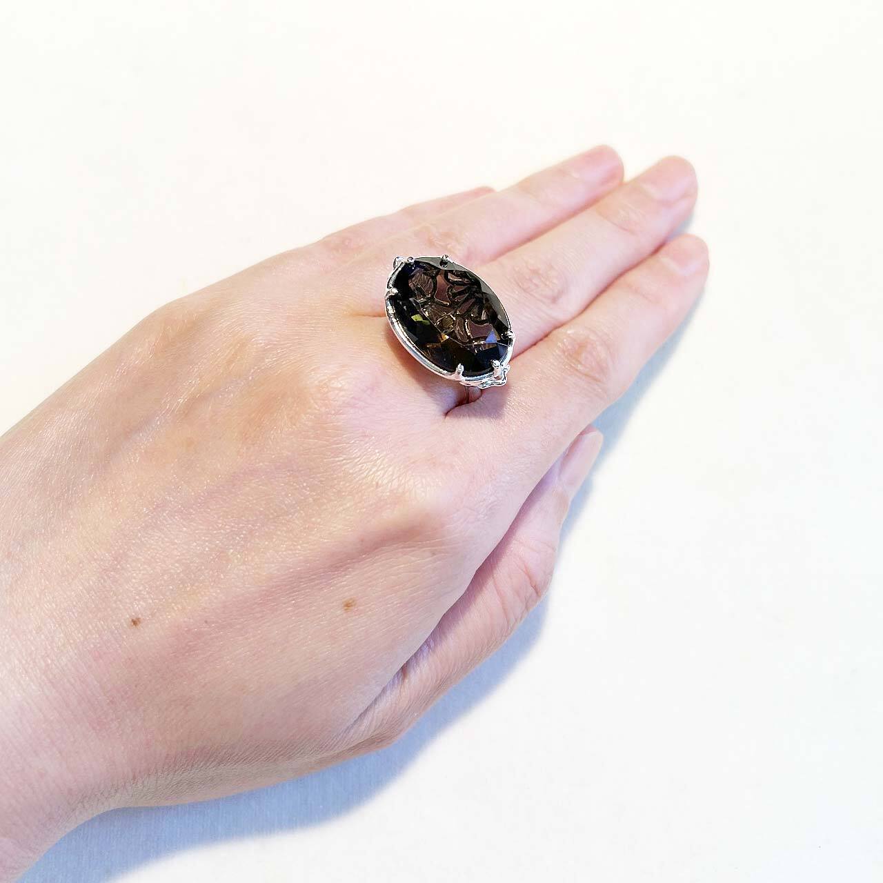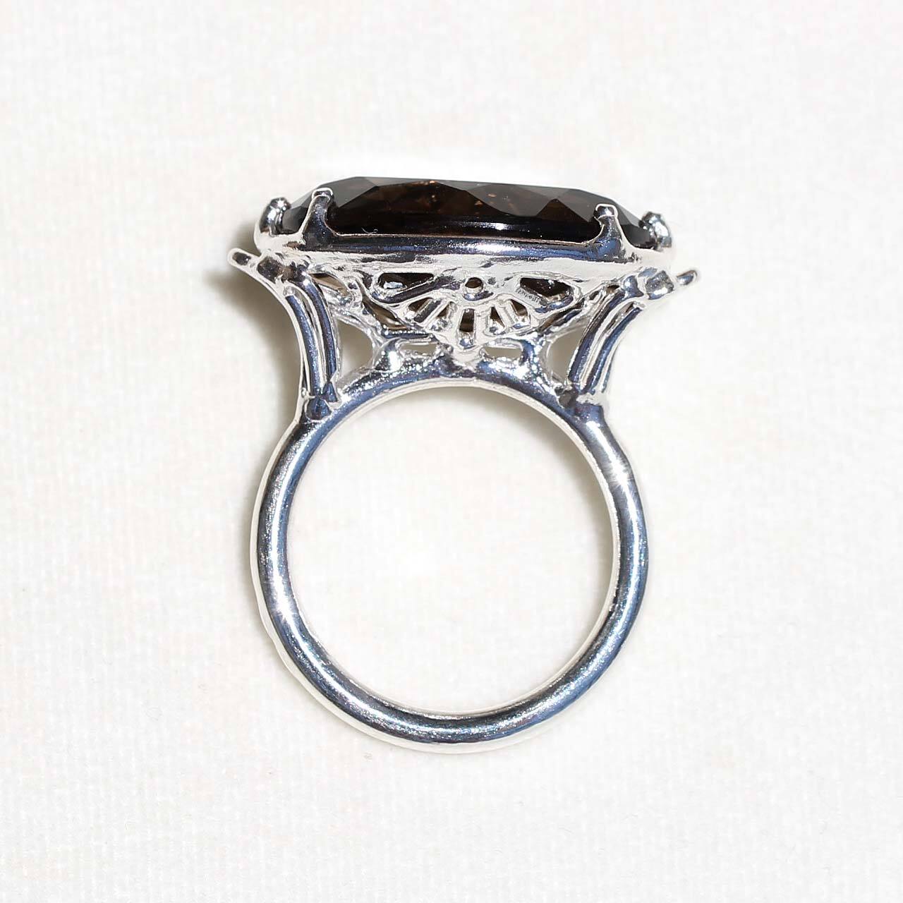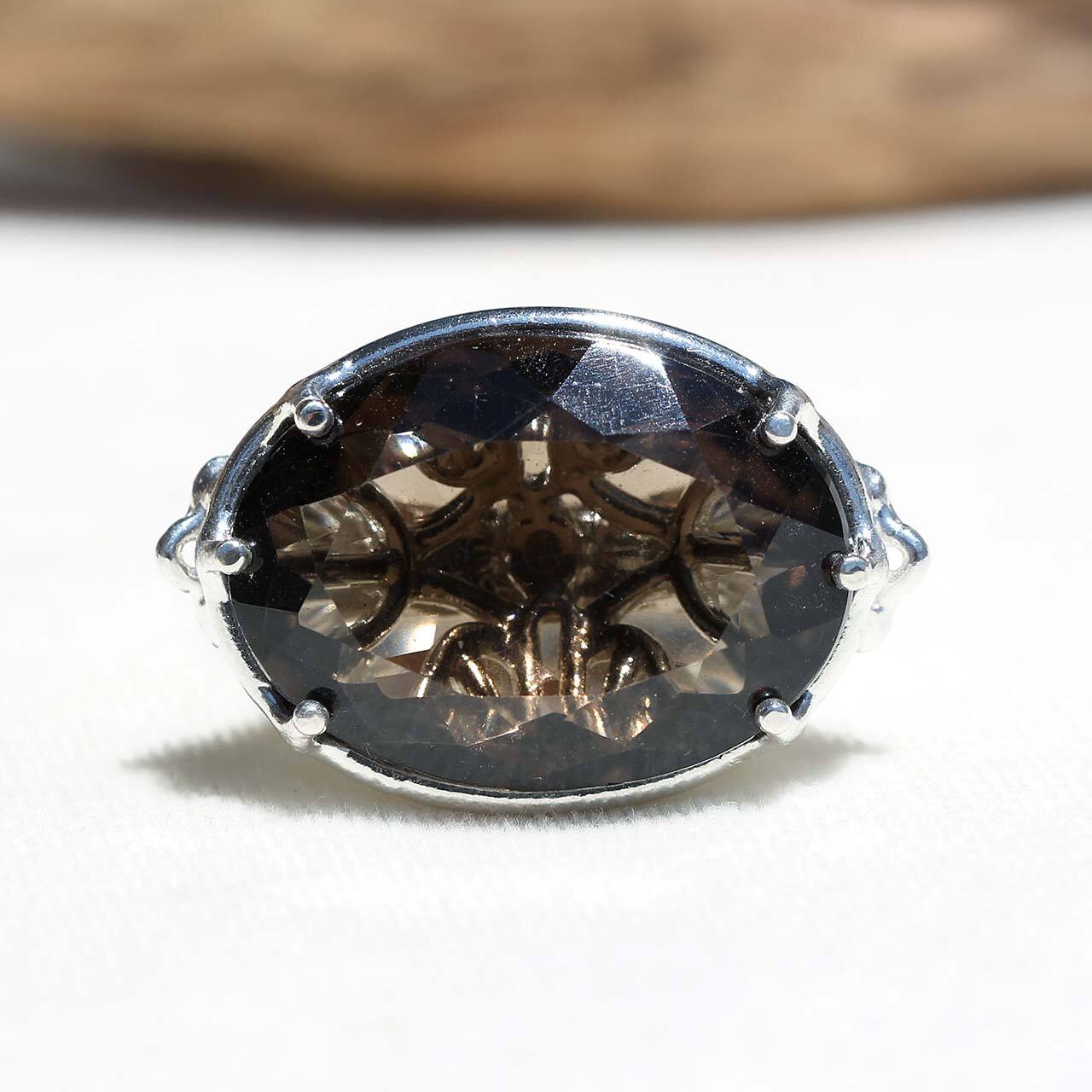 横20mmほどあるルースを横向きのリングにしました。どっしりとした存在感に頼り甲斐も感じてしまう、素敵なスモーキークォーツです。
