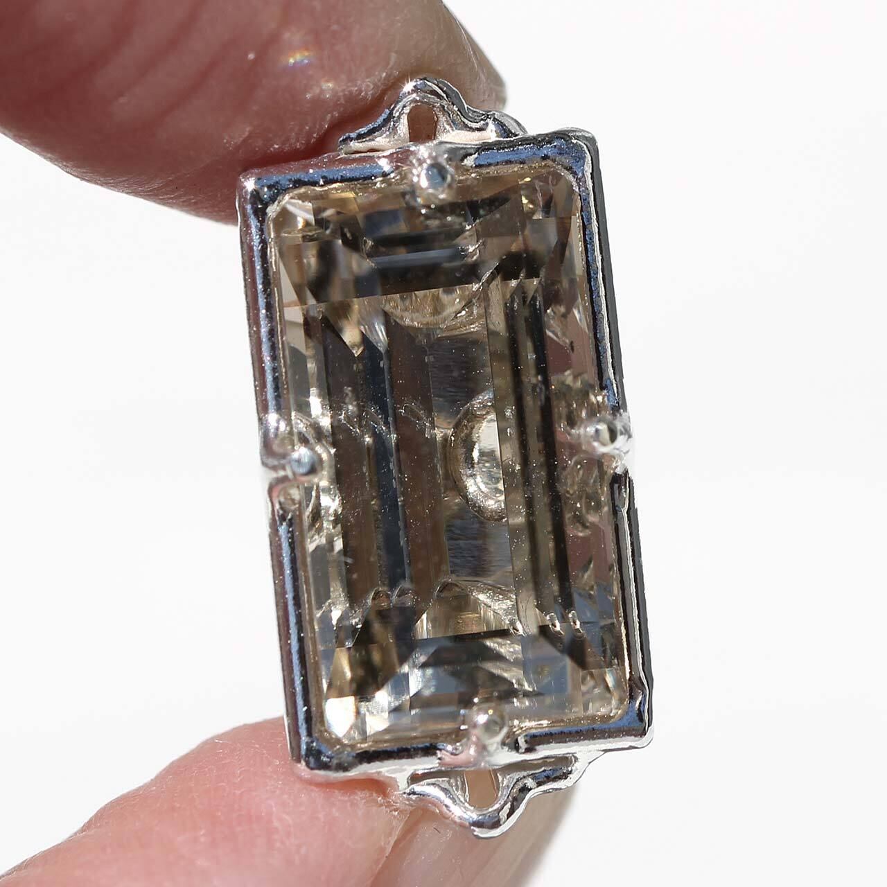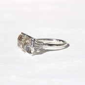 細長めの長方形にカットされたルースを使いました。ごく淡いブラウンを帯びた色合いです。目視ですとほぼインクルージョンは見られません(画像4〜7枚目をご参照ください)。
