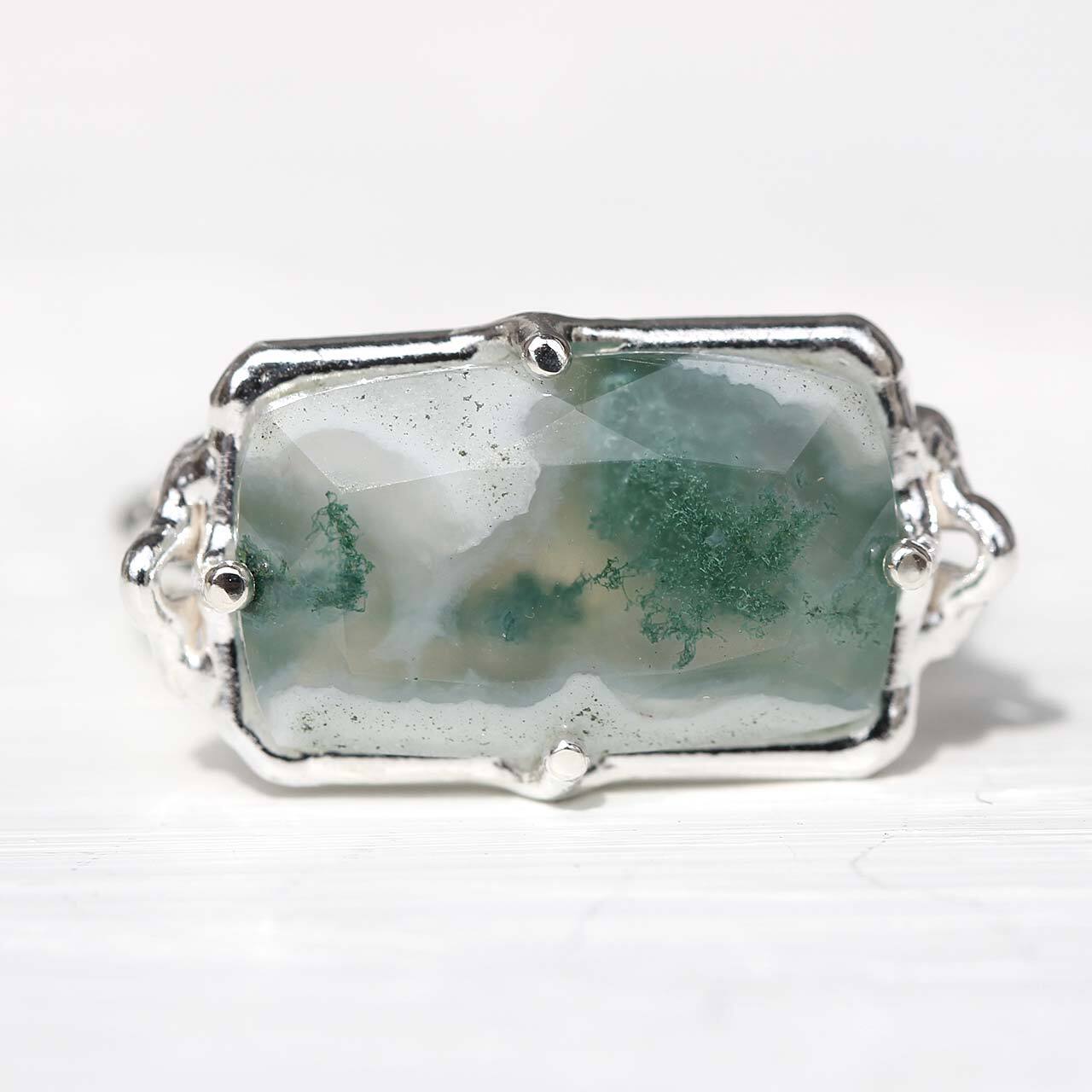モスアゲートはアゲート(瑪瑙)にクローライトが内包されたもので、深緑色のクローライトが苔(モス)のように見えることから名付けられています。