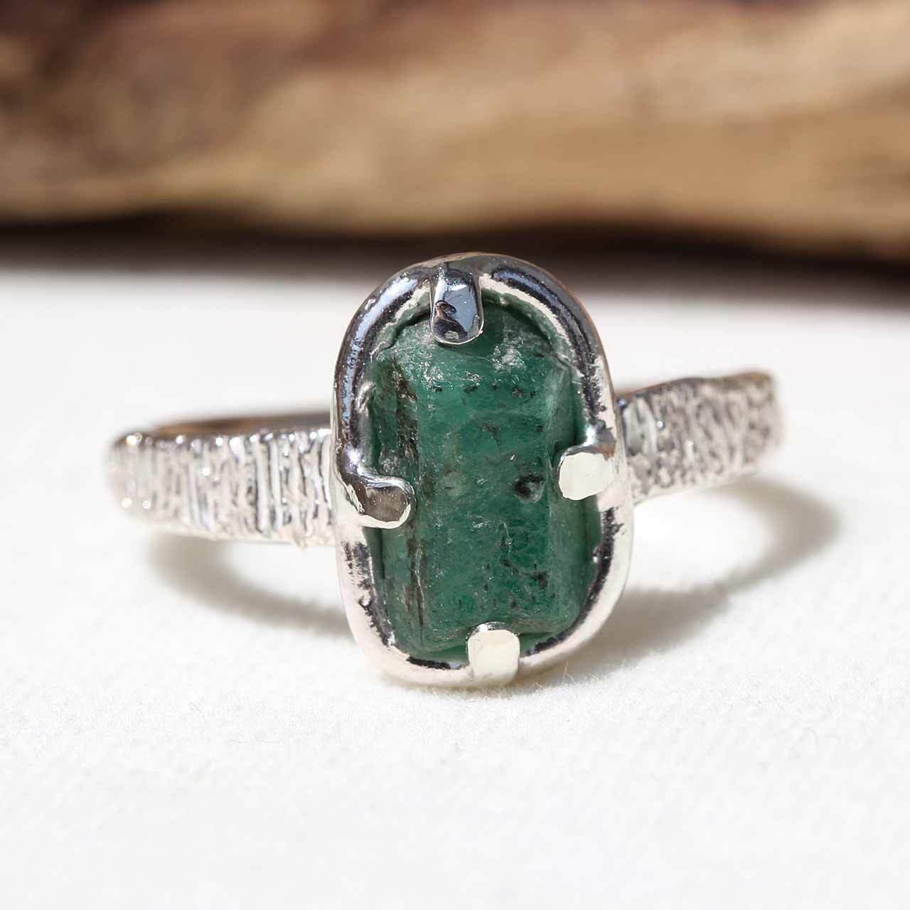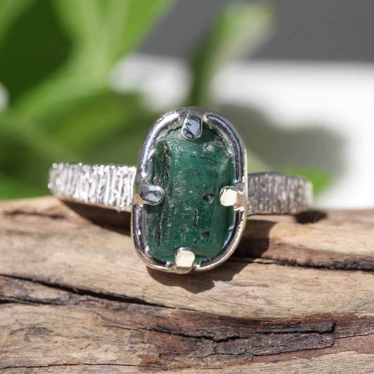 ブラジル産エメラルドの原石をそのままリングにしました。