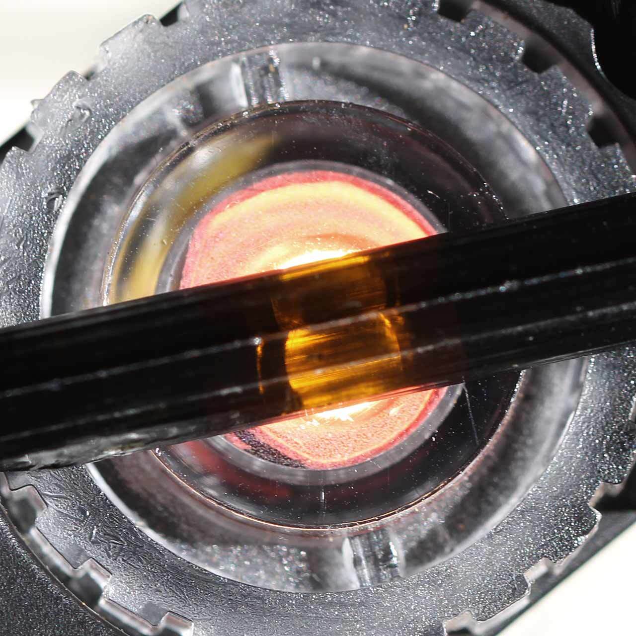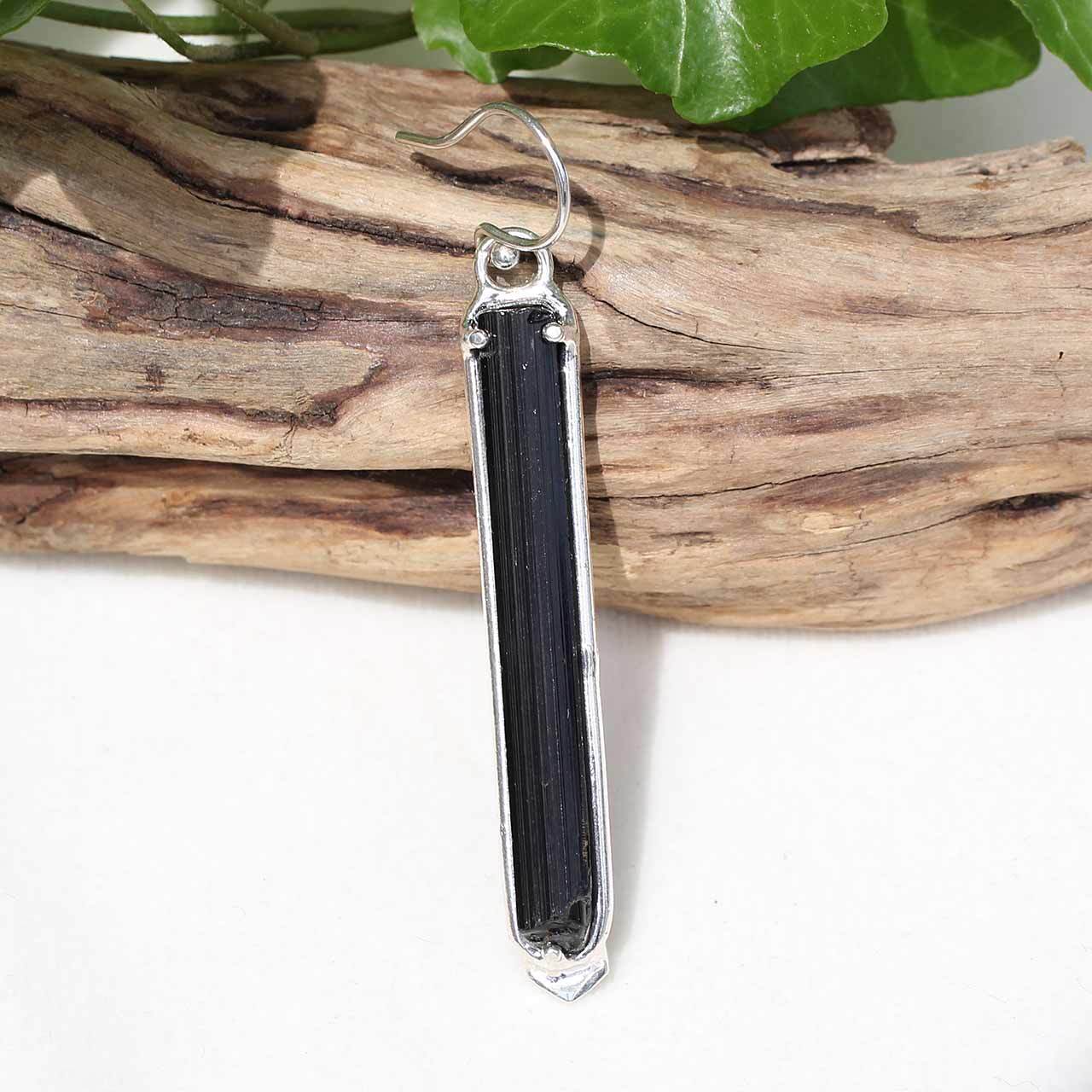 細長い原石で地色は黒ですが、完全に不透明という訳ではなく強い光に透かすと光を通します(画像6枚目をご参照ください)。表面に成長線が入っており、一部へこみと欠けがあります。