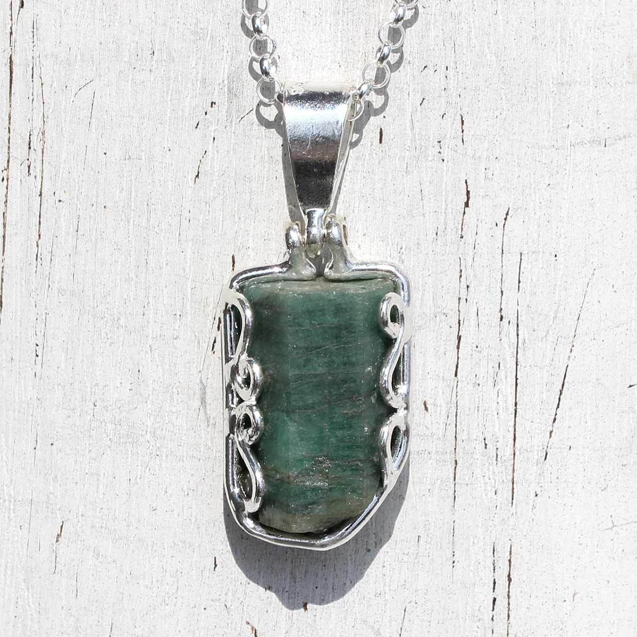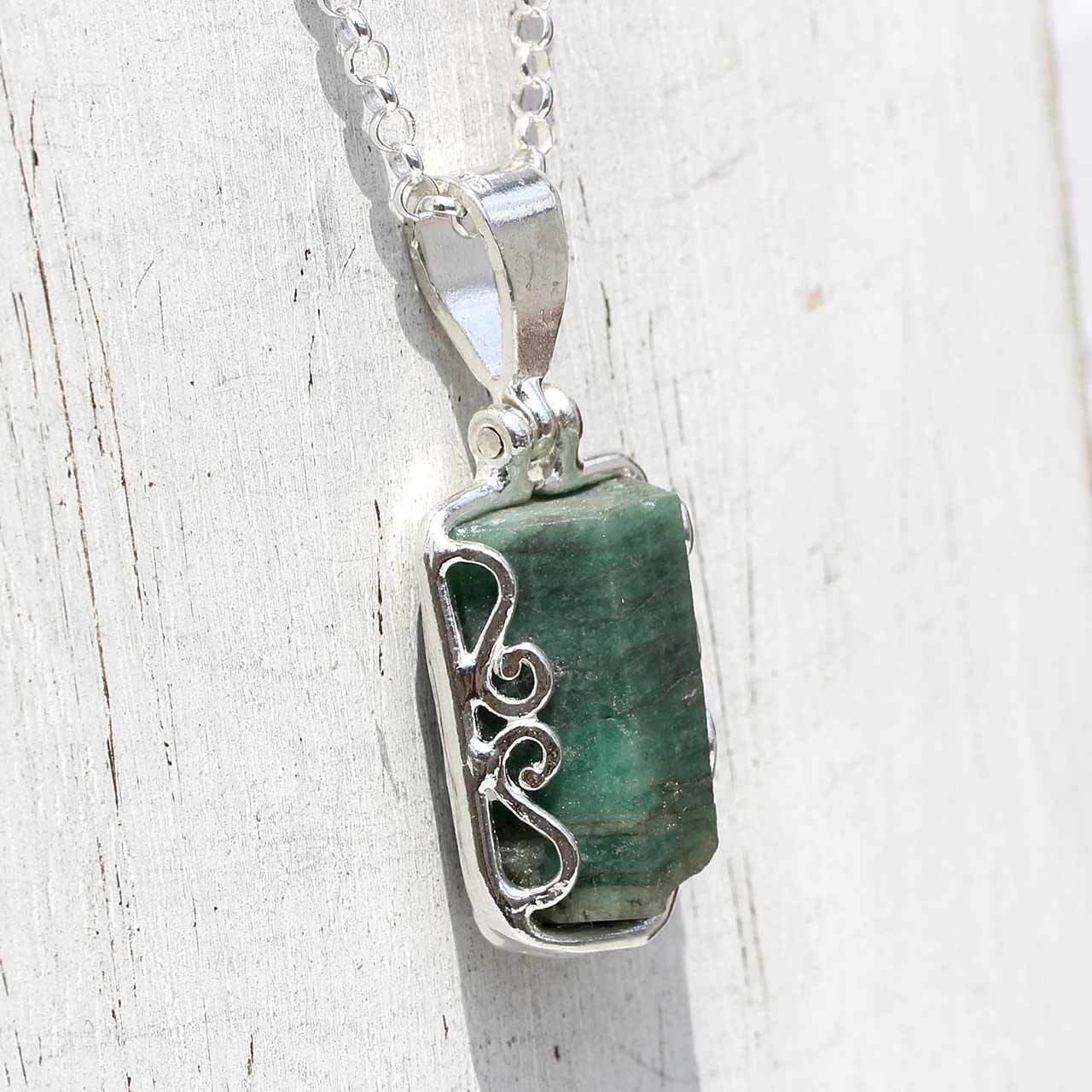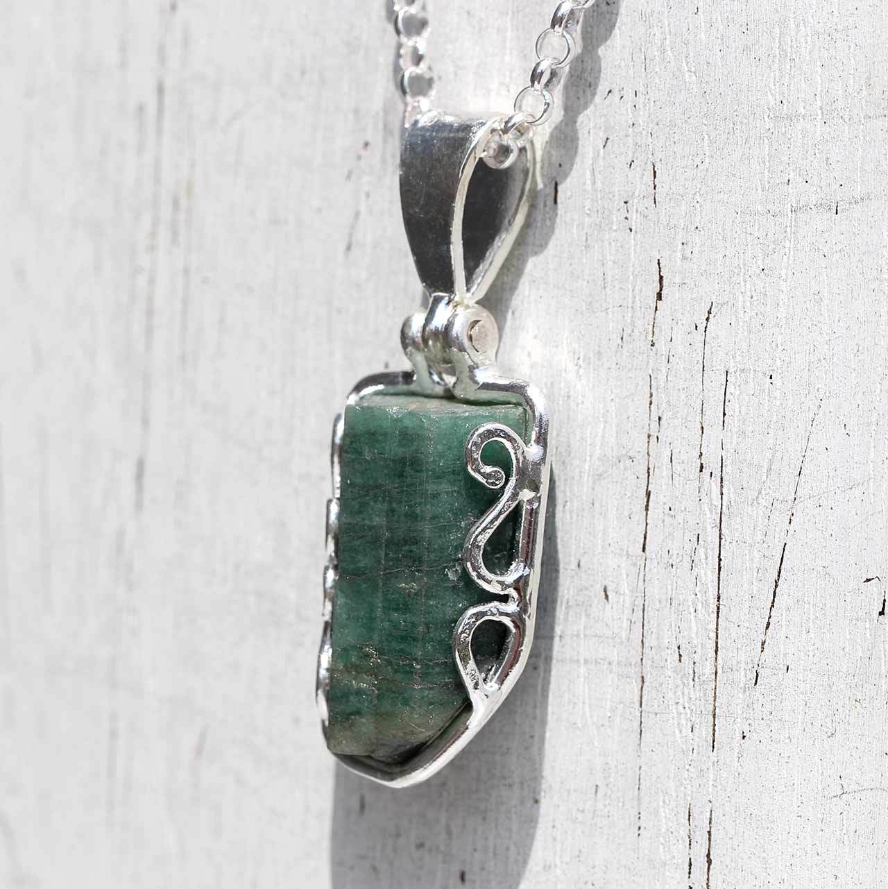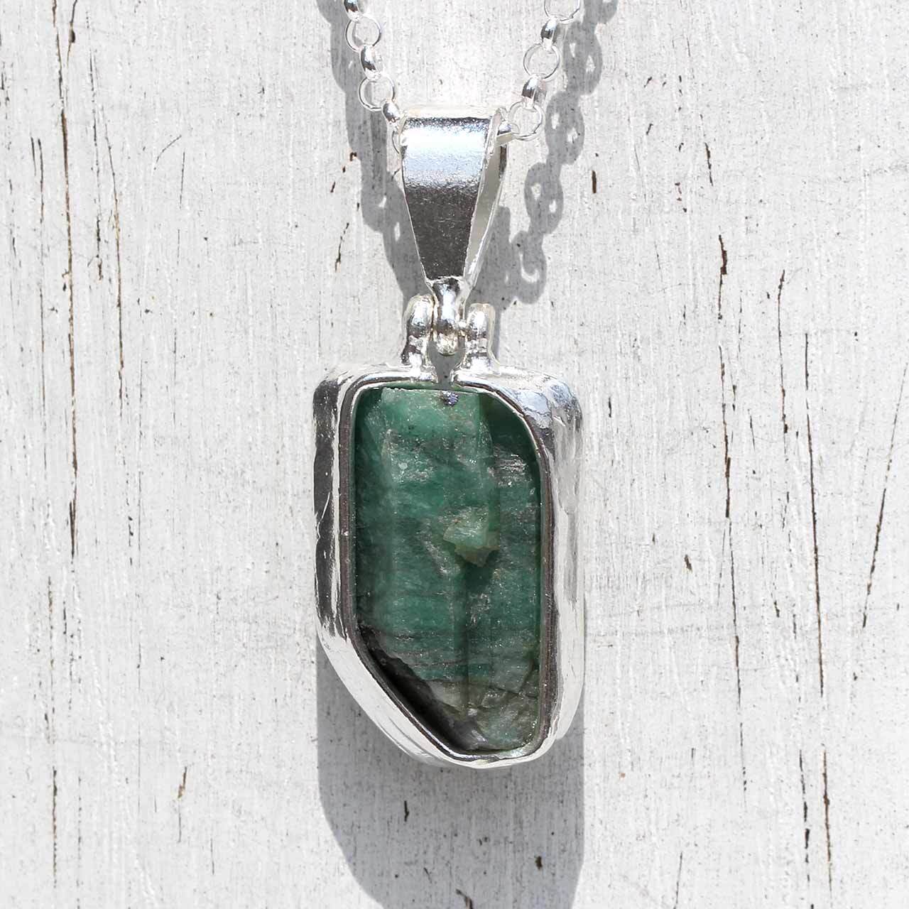 ブラジル産エメラルドの原石をそのままネックレスに仕立てました。
