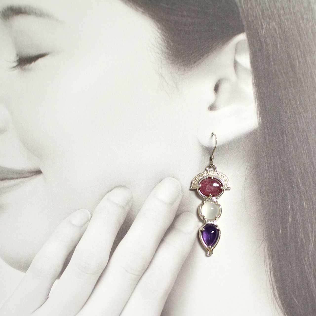 トルマリン、ムーンストーン、アメシストを合わせたピアスです。