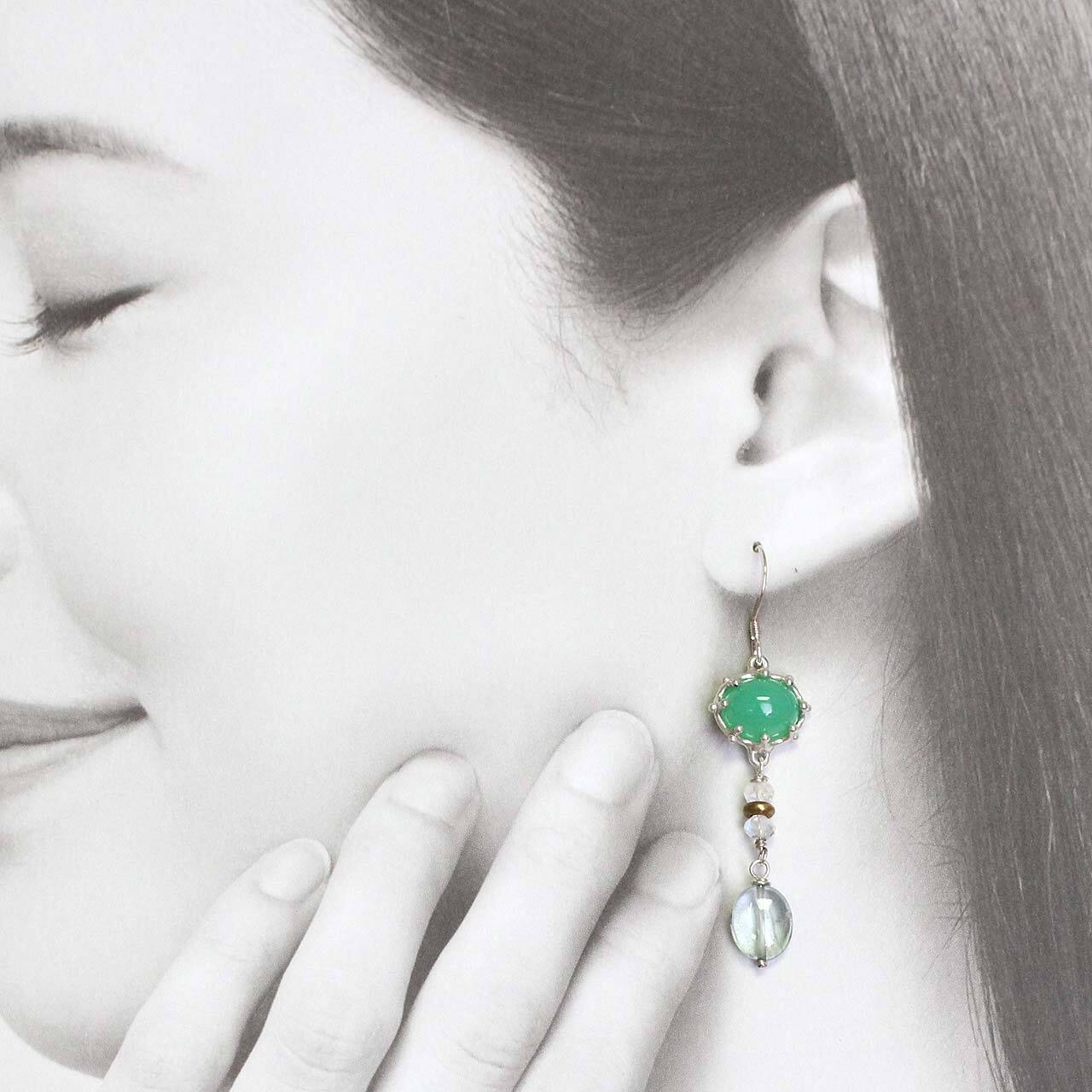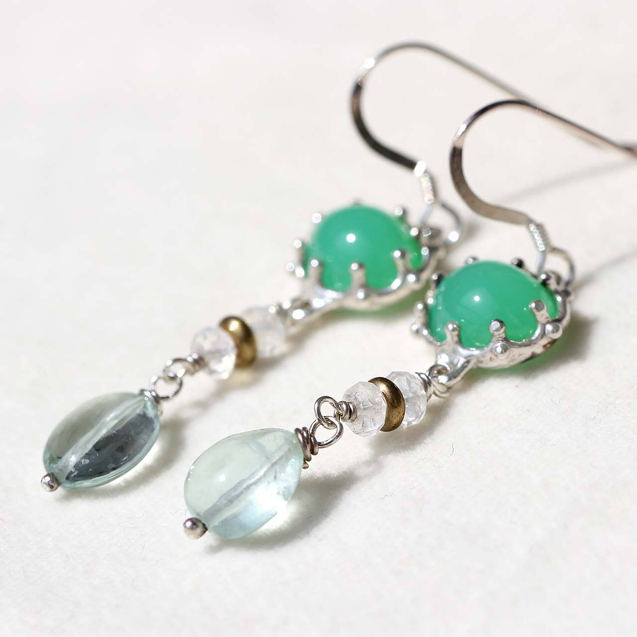 クリソプレーズとムーンストーン、アクアマリンを合わせたピアスです。